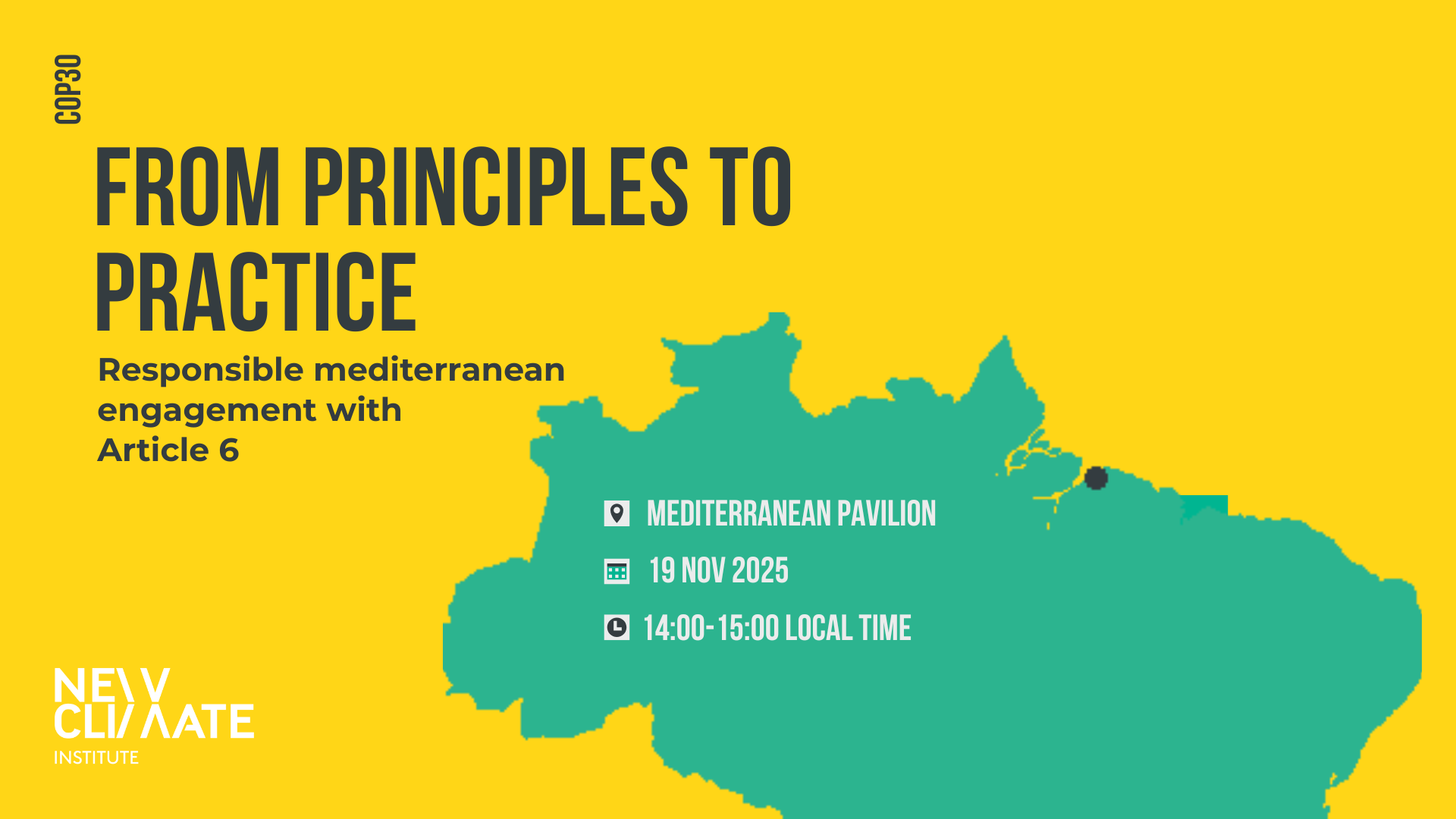 From the Mediterranean to the Amazon, the urgency to turn finance into genuine mitigation has never been clearer. This event brings Article 6 of the Paris Agreement to the Mediterranean Pavilion by launching the Article 6 Observatory — an independent consortium of global and Mediterranean experts committed to ensuring that Article 6 carbon markets channel finance into real emission reductions, uphold environmental integrity, and enable climate cooperation across the Mediterranean and beyond.